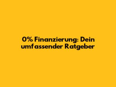 0% Finanzierung: Alles, Was Du Wissen Musst!