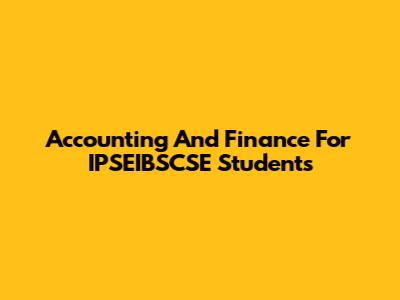 Accounting And Finance For IPSEIBSCSE Students