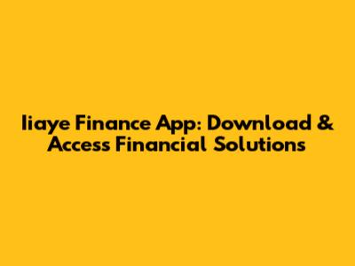 Iiaye Finance App: Download & Access Financial Solutions