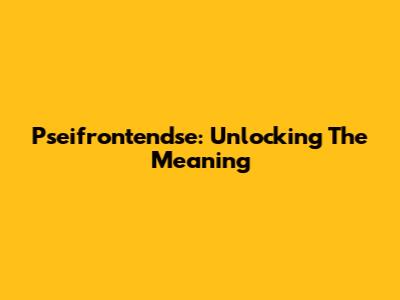 Pseifrontendse: Unlocking The Meaning