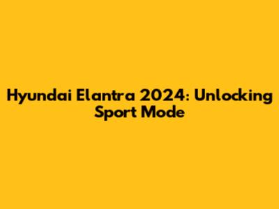 Hyundai Elantra 2024: Unlocking Sport Mode