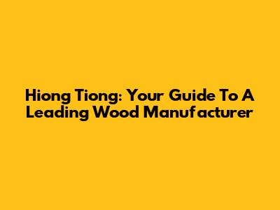 Hiong Tiong: Your Guide To A Leading Wood Manufacturer
