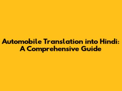 The Core Translation: What is an Automobile in Hindi?