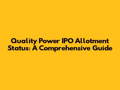 I hope this guide helps you easily check your Quality Power IPO allotment status. If you have any questions, feel free to ask!