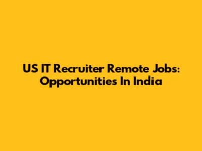 US IT Recruiter Remote Jobs: Opportunities In India
