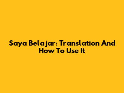 Saya Belajar: Translation And How To Use It
