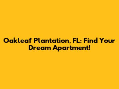 Oakleaf Plantation, FL: Find Your Dream Apartment!