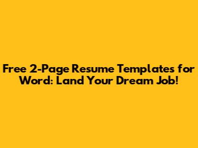 Hey guys! Are you on the hunt for a new gig and need a resume that wows? We all know that a killer resume is your golden ticket to landing that dream job, and sometimes, you just need a little extra space to brag about all your awesome accomplishments. That's where two-page resume templates for Word come in handy! Forget those clunky, one-size-fits-all templates you find lying around. We're talking about stylish, professional, and totally free options that will make your application shine. Whether you're a seasoned pro with a ton of experience or a fresh grad with a boatload of skills, having a well-structured two-page resume can make all the difference. Let's dive into why these templates are your secret weapon and how to snag the best ones without spending a dime!