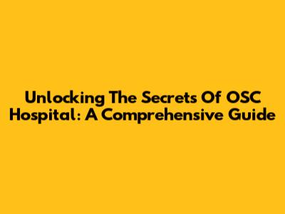 Unlocking The Secrets Of OSC Hospital: A Comprehensive Guide