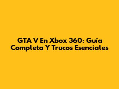 GTA V En Xbox 360: Guía Completa Y Trucos Esenciales