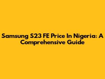 Samsung S23 FE Price In Nigeria: A Comprehensive Guide