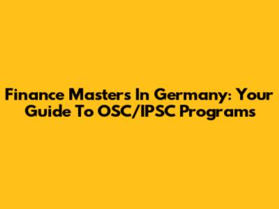 Finance Masters In Germany: Your Guide To OSC/IPSC Programs