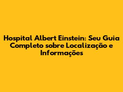 Como Chegar ao Hospital Albert Einstein: Dicas e Informações