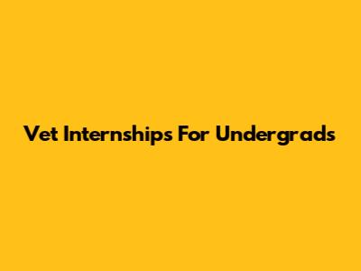 Vet Internships For Undergrads