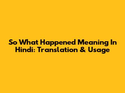 So What Happened Meaning In Hindi: Translation & Usage