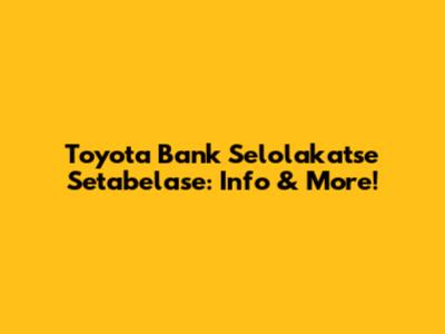 Toyota Bank Selolakatse Setabelase: Info & More!