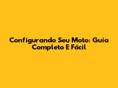 Configurando Seu Moto: Guia Completo E Fácil