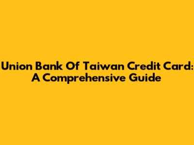 Union Bank Of Taiwan Credit Card: A Comprehensive Guide