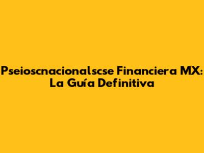 Pseioscnacionalscse Financiera MX: La Guía Definitiva