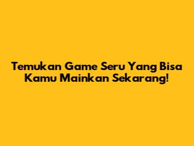 Temukan Game Seru Yang Bisa Kamu Mainkan Sekarang!