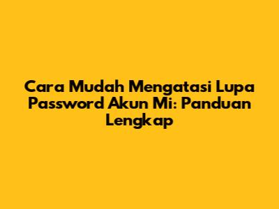 Cara Mudah Mengatasi Lupa Password Akun Mi: Panduan Lengkap