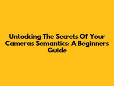 Unlocking The Secrets Of Your Camera's Semantics: A Beginner's Guide