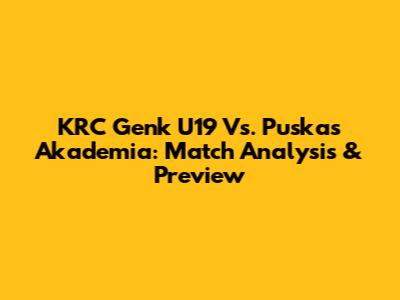 KRC Genk U19 Vs. Puskas Akademia: Match Analysis & Preview