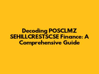 Decoding POSCLMZ SEHILLCRESTSCSE Finance: A Comprehensive Guide