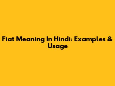 Fiat Meaning In Hindi: Examples & Usage