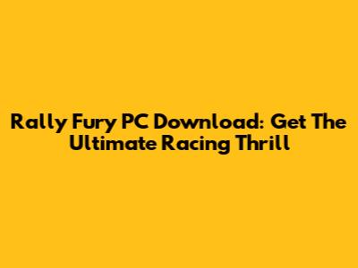 Rally Fury PC Download: Get The Ultimate Racing Thrill
