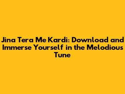 "Jina Tera Me Kardi" is more than just a song; it’s an experience. By downloading it and listening with intention, you open yourself up to a world of emotions and musical beauty. So go ahead, download the song, lose yourself in its melody, and let the music speak to your soul. Whether you're looking for solace, inspiration, or simply a beautiful tune to brighten your day, "Jina Tera Me Kardi" is sure to deliver. Embrace the melody and let it resonate within you, enriching your life with its profound emotional depth.