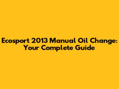 Ecosport 2013 Manual Oil Change: Your Complete Guide