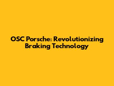 OSC Porsche: Revolutionizing Braking Technology