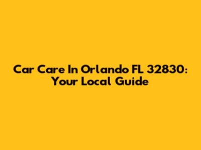 Car Care In Orlando FL 32830: Your Local Guide