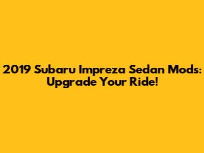 2019 Subaru Impreza Sedan Mods: Upgrade Your Ride!