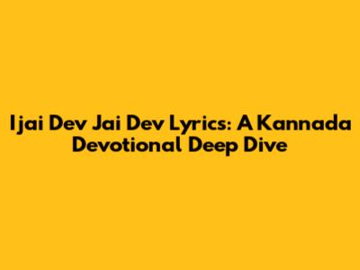 Ijai Dev Jai Dev Lyrics: A Kannada Devotional Deep Dive