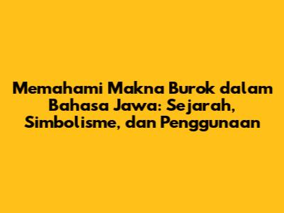 Guys, mari kita selami dunia Bahasa Jawa yang kaya dan penuh makna! Kali ini, kita akan membahas tentang apa arti 'burok' dalam Bahasa Jawa, sebuah kata yang mungkin sudah sering kalian dengar, baik dalam percakapan sehari-hari, cerita rakyat, atau bahkan dalam konteks keagamaan. Jadi, apa sebenarnya 'burok' itu? Mari kita kupas tuntas, mulai dari sejarahnya, simbolisme yang terkandung di dalamnya, hingga bagaimana kata ini digunakan dalam berbagai konteks.