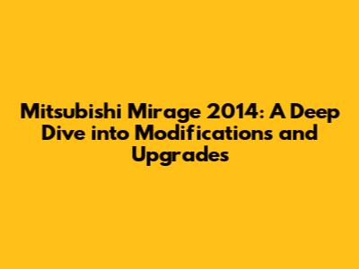 Hey car enthusiasts! Ever wondered how to soup up a Mitsubishi Mirage 2014? This article is your ultimate guide! We're diving deep into the world of Mitsubishi Mirage 2014 modifications, exploring everything from performance enhancements to cosmetic upgrades. Whether you're a seasoned gearhead or just starting to customize your ride, you'll find plenty of tips and inspiration here. Get ready to transform your Mirage into a head-turning machine! Let's get started. We will explore the different aspects to customize your car and what you need to know.