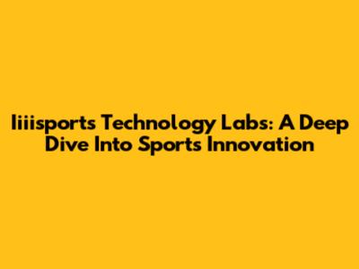 Iiiisports Technology Labs: A Deep Dive Into Sports Innovation