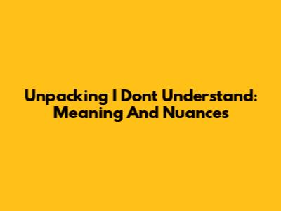 Unpacking 'I Don't Understand': Meaning And Nuances