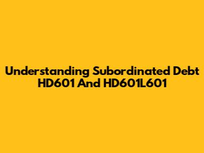 Understanding Subordinated Debt HD601 And HD601L601