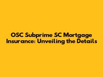 What Exactly is OSC Subprime SC Mortgage Insurance?