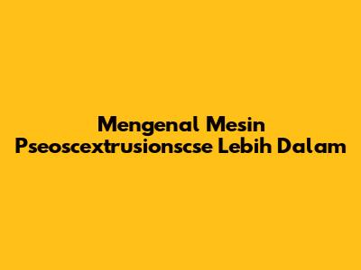 Mengenal Mesin Pseoscextrusionscse Lebih Dalam