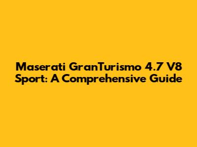 Maserati GranTurismo 4.7 V8 Sport: A Comprehensive Guide