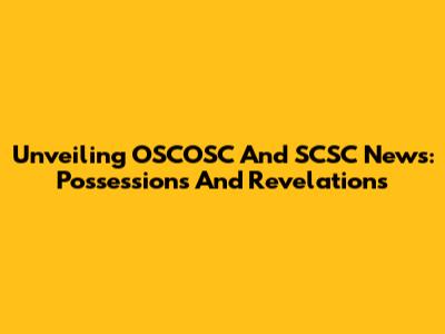 Unveiling OSCOSC And SCSC News: Possessions And Revelations