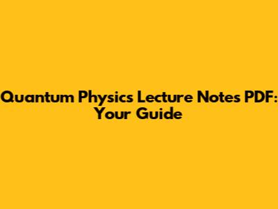 Quantum Physics Lecture Notes PDF: Your Guide