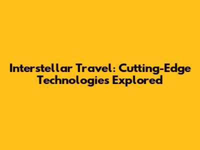 Interstellar Travel: Cutting-Edge Technologies Explored