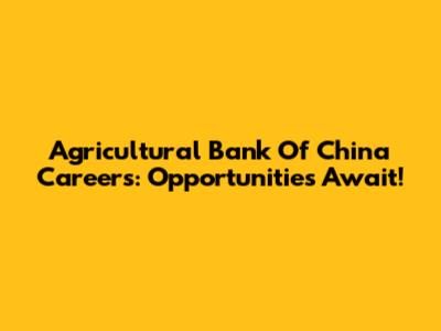 Agricultural Bank Of China Careers: Opportunities Await!