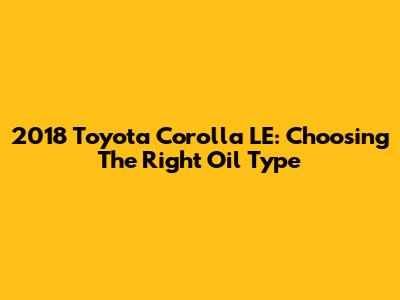 2018 Toyota Corolla LE: Choosing The Right Oil Type