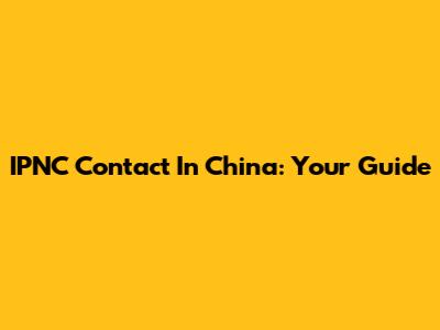 IPNC Contact In China: Your Guide